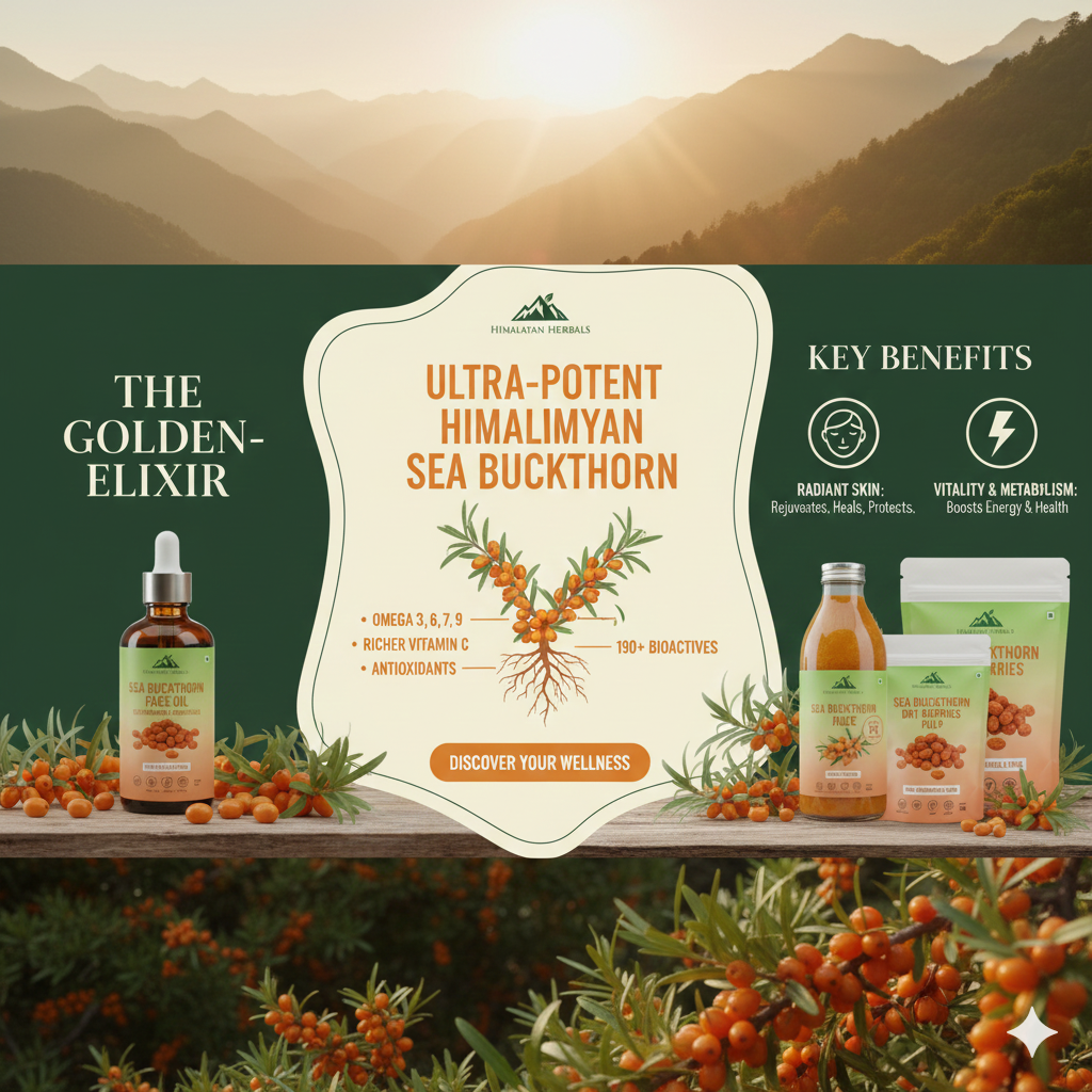 Sea Buckthorn Oil: A powerhouse of Omegas (3, 5, 6, 7, 9) and Vitamin C. Fights both anti-aging and acne.